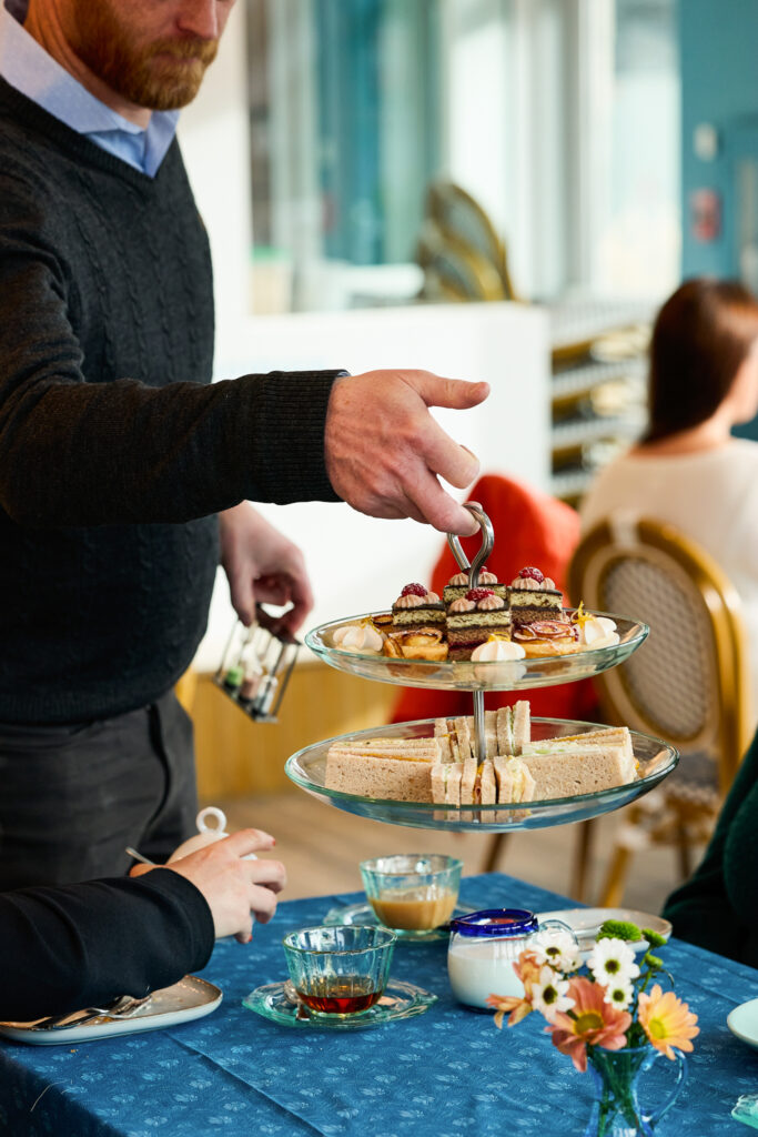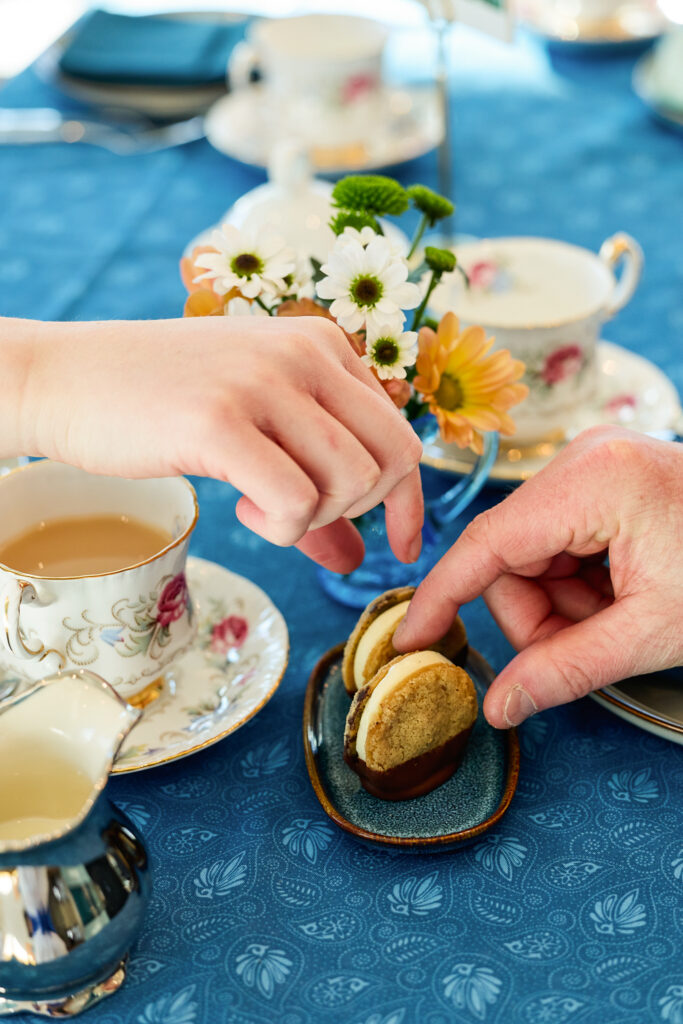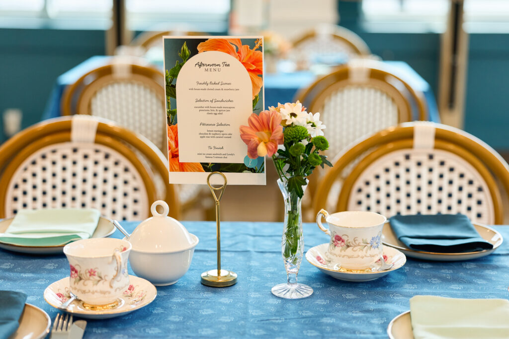 Join us for a Lovely afternoon tea service! Enjoy cups of black, green, or herbal loose leaf tea accompanied by servings of biscuits with clotted cream and jam, assorted finger sandwiches, and a delightful selection of treats.